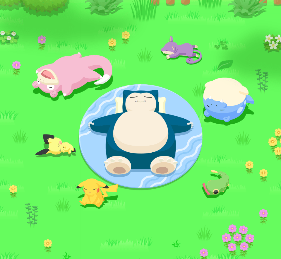 Insieme agli Snorlax che vivono su queste isole, svolgerai delle ricerche per scoprire come dormono i Pokémon.